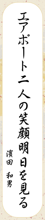 空港での恋人の姿。見つめあい笑いあう二人の未来は輝かしいものに。